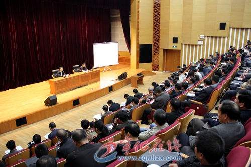 ??? 11月28日,寧化舉行黨的十八屆四中全會精神專題報告會。市委宣講團團長吳健宏、市委宣傳部理論科科長肖永貴到會宣講。縣委副書記楊興忠主持報告會。縣副處以上領導干部,縣直各單位主要領導,各鄉(鎮)黨委書記或鄉(鎮)長、綜治分管領導,政法系統副科以上干部參加。