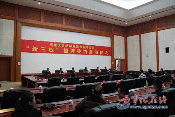 ???? 2月8日,福建大自然林業股份有限公司與東興證券掛牌“新三板”合作在寧化正式簽約,標志著二家的合作進入實質性階段。縣委常委、宣傳部長林移發,副縣長張清祥等出席簽約儀式。