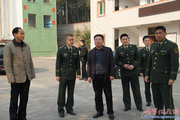 余建地(中)、陳朝利(左一)慰問縣消防大隊官兵