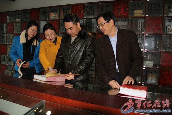 ??? 劉嘉水一行先后前往世界客屬文化交流中心和石壁客家祖地進行視察。在世界客屬文化交流中心,劉嘉水一行深入客家聯誼館、圖書館、族譜館,聽取相關負責人的情況匯報,詳細了解客家三館的相關情況,他認為“三館”建設到位,客家文化氣息濃郁,富有歷史厚重感;客家圖書館藏書很豐富,族譜館資料收集較全面,今后要進一步豐富客家藏書,為客家人士、學者研究客家文化提供豐富的文獻資料。