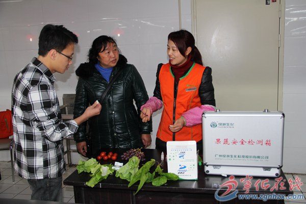 ??? 活動現場擺放的快速檢測儀,可供顧客對蔬菜、水果等新鮮蔬果表面的農藥殘留進行檢測,也可檢測干貝、魷魚等干貨上的甲醛等物質超標與否。為了讓市民熟悉農藥殘留檢測的操作流程,工作人員現場進行示范操作。