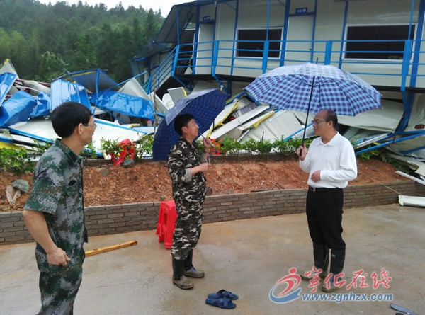 縣委書記肖長根(右一)到方田鄉指導抗洪救災工作