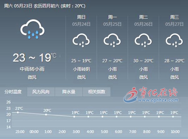 寧化短期天氣預報:24日:陰有小雨,溫度20-23℃;25日:陰有小雨,溫度20-25℃;26日:陣雨或雷陣雨,溫度20-30℃;27日:陰天間多云,有陣雨或雷陣雨,溫度20-28℃;28日:陣雨或雷陣雨,溫度20-30℃;29日:陣雨或雷陣雨,溫度22-30℃。(夏雨琳)