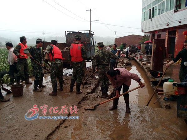 ??? 5月23日,來自三明市60多位武警內衛、交通和消防官兵分組來到集鎮街區和黃坊、滑石等重災村,同當地干部群眾一起清除道路垃圾和淤泥。在5月19日,該鎮街區和多個村莊地面水位高達1至2米,洪水消退后地面滯留大量垃圾,淤泥堆積二三十公分,武警官兵到來后,更多的健壯勞力加入到了清掃和清運的行列,一些群眾自發地為官兵準備茶水。經過警民共同努力,上述村莊和街區的交通環境得到明顯改善。