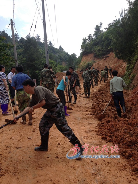 ??? 將軍嶺山路崎嶇、傾斜,多處塌方且掏空嚴重,在塌方處,泥石堆積如山,導致前去作業的鉤機、鏟車不斷打滑,難度非常大。面對這樣的大障礙,該鄉干部職工、中心學校教師和武警交通第八支隊官兵并沒有氣餒,而是頂著烈日,拿起手中的鏟子、鋤頭,聚集全身力量,一鏟一鏟的把黏重的泥石清除干凈。經過5個多小時的奮戰,共清除塌方2萬余立方,打通了泗溪村將軍嶺通往外界通道7公里。