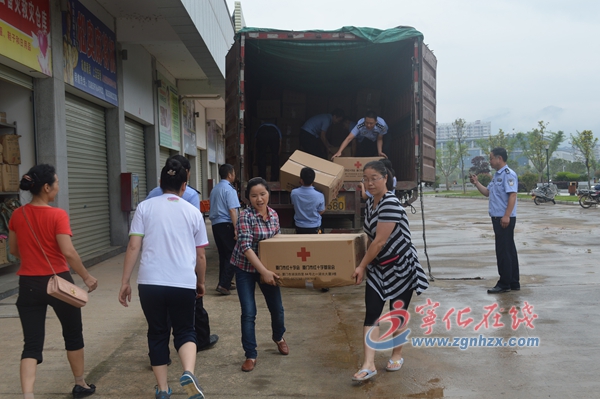 5月27日,一批價值34萬余元的救災物資運抵寧化。寧化紅十字會組織志愿者,在縣森林公安干警幫助下,搬運、清點,分發到有關鄉鎮。