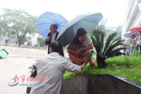 一袋,二袋,一筐,二筐……面對齊腰深的洪水,邱娥英毅然走向洪流,艱難地向食堂挪去,與男教師一起,將上千斤大米和百余斤蔬菜安全轉移到教學樓教室里。肆虐的洪水,柔弱的身軀,她幾次險些摔倒,左腳被玻璃劃了一道口,但她渾然不顧,咬緊牙關堅持著。