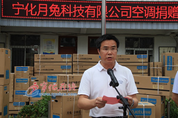 ??? 副縣長張清祥出席捐贈儀式并致辭。寧化月兔科技有限公司董事長史泉致辭并把空調發放給受贈學校。