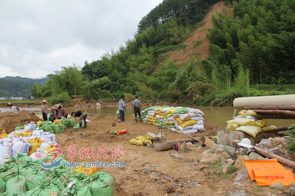 ??? 謝坊水毀河堤現(xiàn)場(chǎng),村民們正忙著將沙石裝入編織袋,將沙袋堆放成一堵墻似的,為架設(shè)通向河對(duì)岸的輸水管道作鋪墊。當(dāng)?shù)卮甯刹扛嬖V筆者,“7?3”洪災(zāi)造成的破壞程度雖不及“5.19”洪災(zāi)嚴(yán)重,但全村200多畝耕地被淹,大量水渠再次遭到破壞,目前正組織村民搶種搶插,修復(fù)水渠保灌溉。