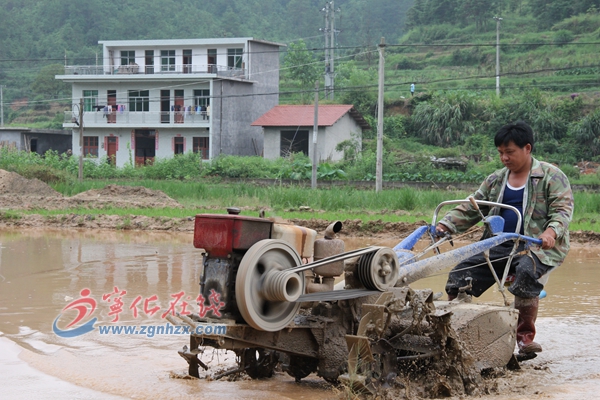 村民在復墾后的農田里耕田,準備種上晚稻。