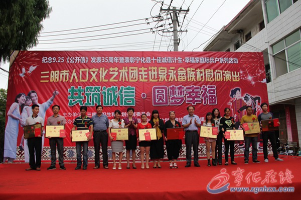 ??? 9月22日,寧化十佳“誠信計生?幸福家庭標兵戶”表彰會在泉上鎮泉永畬族村進行。