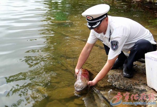 ??? 9月24日,寧化縣漁政大隊(duì)執(zhí)法人員將一條體長60公分,重3.25公斤的野生娃娃魚放歸大自然,這是寧化縣漁政大隊(duì)成立以來首次發(fā)現(xiàn)并放生野生娃娃魚。