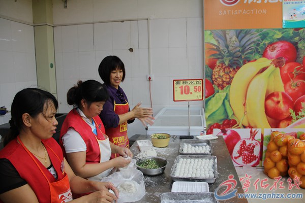 在江西省石城縣繁華地段的新佳多超市,來自寧化的高級廚師黃紅秀設立水餃專柜,推出現包現賣客家水餃的業務,將小水餃做成大生意。