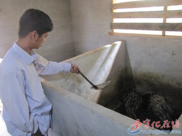 ??? 豪豬模樣丑陋,全身呈棕褐色,背部披著利箭般黑白相間的棘刺,形似刺猬,聲如豬叫。豪豬全身都是寶,被人們視為營(yíng)養(yǎng)保健珍品,市場(chǎng)走俏。寧化曹坊鎮(zhèn)曹昇村的118只豪豬,也成為養(yǎng)殖戶雷紹先發(fā)家致富的寶貝。