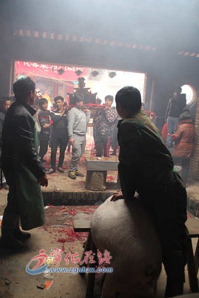 ? ? 面對天官,小伙們聳動肩膀,把大小菩薩搖動起來,等天官把各種吉祥發彩說完,小伙子們又把菩薩轉回廟里。這時,村里的屠夫,手腳干凈利索地把祭祀的豬宰了放血,紙錢打醮后,在鞭炮的轟鳴聲中,小伙子們以最快的速度,抬起華光尊王等菩薩在村里奔跑巡游,所到之處,街巷兩邊的人家都會燃放鞭炮,來迎接尊王、祈福平安。