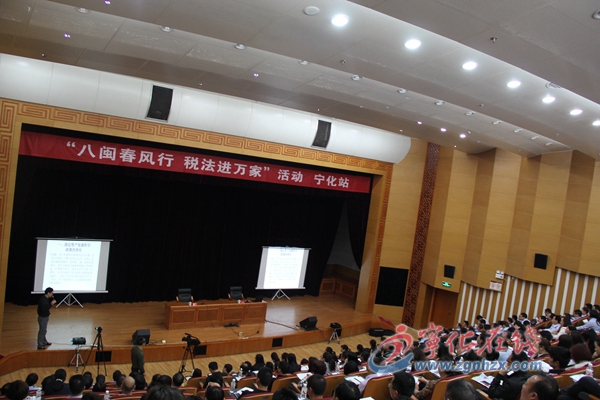 ? ? 4月14日上午,由省國稅局、省地稅局聯(lián)合主辦的“八閩春風(fēng)行 稅法進萬家”活動走進寧化,300余名寧化企業(yè)納稅人代表和縣國、地稅干部在世客中心學(xué)術(shù)報告廳參加培訓(xùn)。