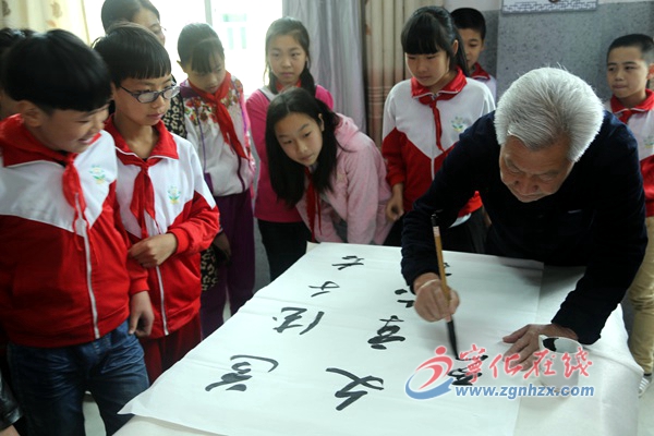 ? ? 書法家邊創(chuàng)作邊講解運筆技巧以及臨貼的規(guī)律,鼓勵廣大師生要以持之以恒的精神練好毛筆字、寫出精氣神。“我喜歡書法,平時都是自己對著字帖臨摹,今天看到書法家現場創(chuàng)作,面對面的得到指導,收獲很大!”學生紛紛拿出紙筆墨硯,現場習字,有的干脆拿著寫好的書法作品請書法家指點。