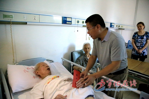? ? 6月25日,縣委書記余建地帶著黨的關懷和溫暖,來到縣醫院病房看望慰問建國前入黨老黨員張建國,并送上慰問金。今年已經95歲高齡的張建國老人1947年入黨,為黨的革命事業和國家的建設奉獻了自己的熱血。余建地與老人進行了親切交談,了解他的身體情況,并祝老人建黨節快樂,余建地感謝老人在革命戰爭年代出生入死,為國家和人民做出的突出貢獻,拜托其子女要照顧好老人,并衷心祝愿他健康長壽,幸福安康。他要求,各級黨組織要尊重老黨員,生活上多多關心老黨員,思想上與老黨員多溝通,主動為他們排憂解難,讓他們切實感受到黨和政府的關懷,共享改革發展成果。