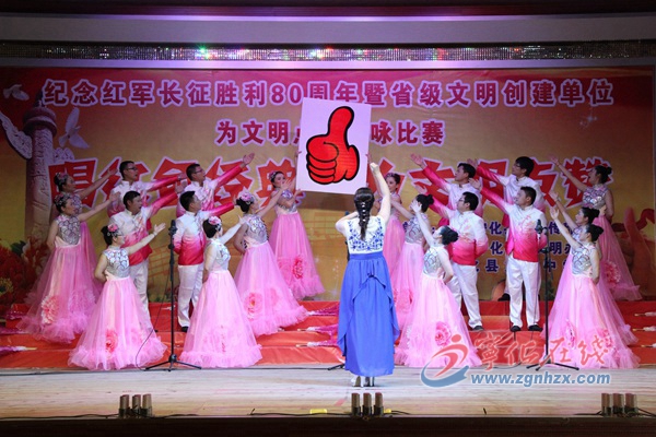 ? ? 比賽在縣教育局合唱《為文明點贊》中拉開序幕。伴隨著或激昂或舒緩的音樂,參賽隊演唱了《為文明點贊》、《映山紅》、《唱支山歌給黨聽》、《祖國不會忘記》等10多首膾炙人口的經典歌曲。此次比賽匯集了合唱、領唱等多種演唱形式,還融入了舞蹈表演等多種藝術表演元素,高亢、深情、優美的的歌聲贏得在場觀眾們的陣陣喝彩,充分展現了寧化干部職工團結向上、奮勇拼搏的精神風貌。