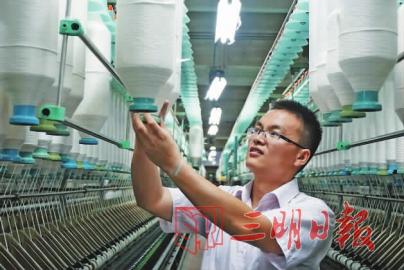 7月14日,在三明紡織股份有限公司異地搬遷的寧化新廠,首期項目進入生產(chǎn)階段。車間里,一排排智能化的紡織設(shè)備整齊劃一,一位戴著眼鏡,清秀靦腆的年輕人指導(dǎo)工人們熟練操作機器設(shè)備。