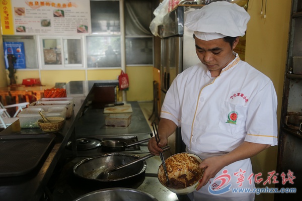 ??? 全家的重?fù)?dān)全落在了張仁華和妻子身上,除了賺錢養(yǎng)家、治病,他別無選擇。自兒子燙傷后,張仁華和妻子就不再外出,一心想留在家鄉(xiāng)創(chuàng)業(yè),既賺錢治病,又照顧家人。2012年,張仁華參加縣小吃辦舉辦的首期客家小吃免費(fèi)培訓(xùn),開始有了從事小吃創(chuàng)業(yè)的想法。2012年8月,在寧化總工會(huì)和小吃辦的幫扶下,夫妻倆在寧化城關(guān)開了家客家小吃店,以泡豬腰為主打品牌,取名“小平泡豬腰”,兼營兜湯、拌面、粉皮、光餅、鮮湯、勺子粉、煨羊腰、秘制骨髓等,現(xiàn)煮現(xiàn)吃,傳統(tǒng)手藝,生意一天天紅火起來。