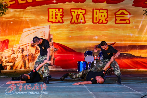 ??? 聯歡晚會在舞蹈《日子越過越紅火》中拉開序幕,演員們身著鮮艷的演出服,在歡快的旋律中翩翩起舞,贏得全場觀眾的陣陣喝彩。樂隊表演《紅日》,男聲獨唱《親愛的小孩》、富有活力的舞蹈《鴻雁》《百花爭妍》《小河彎彎》《誰不說俺家鄉好》《走向復興》,給官兵們送來了一場視覺盛宴。精彩的節目,一個連著一個,動人的旋律、優美的舞姿感染了在場的每一個人,贏得了武警官兵和觀眾的陣陣掌聲。武警官兵表演了匕首術刺殺操和小品《反劫持人質演練》,展示了當代人民衛士、祖國脊梁獻身沙場的豪氣,將整場晚會的氣氛推向了高潮。