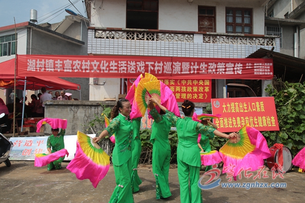 ??? 鎮計生部門聯合文化站文藝宣傳隊登臺獻藝,開展豐富農村文化生活送戲下村巡演暨計生政策宣傳活動,使廣大群眾在趕廟會的同時,又受到了計劃生育教育。