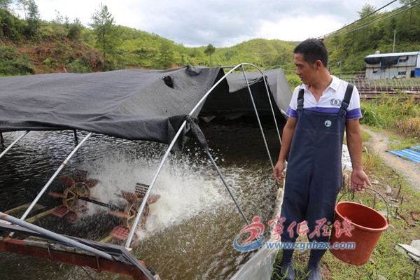 “你看,那條鰻魚游得很不平衡,也不怕光,肯定是得病了。”陳書兵跳下水,用網兜將一條在水面上搖頭擺尾的鰻魚打撈起來,他解釋說,鰻魚容易感染指環蟲、車輪蟲等蟲害,平時要注意觀察,以便對癥下藥,提高鰻魚的成活率。