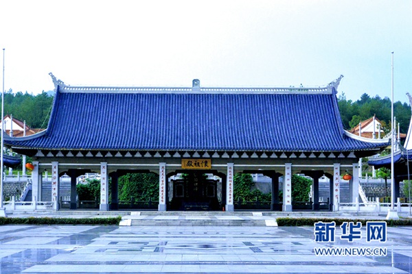 ??? 客家祖地景區(qū)祭祀大殿上的“懷祖殿”橫額為時任中國國民黨榮譽(yù)主席吳伯雄所題寫。(王雄 林楷煜 攝)