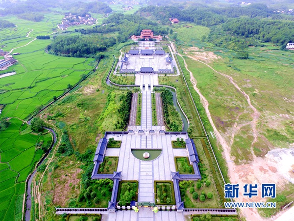 ??? 石壁客家祖地景區坐落于福建省寧化縣,從空中俯瞰,后倚武夷山脈,前瞰石壁盆地,近山勻稱,遠山環抱,宏偉壯闊。(王雄 林楷煜 攝)
