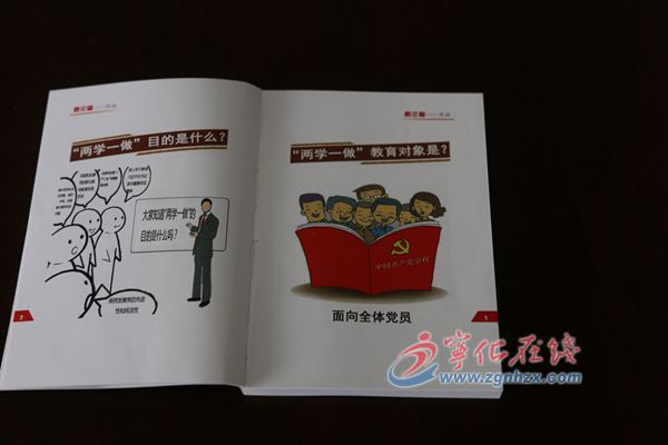 ??? 簡明讀本也叫口袋書,僅有巴掌大小,圖文并茂,制作精美,有效解決了部分黨員不能按時參加集體學習等困難,成為自主學習和集中研討的必備工具書,使黨員可以充分利用業余時間開展學習,真正讓學習進入黨員的工作和日常生活中。書本雖小,內容卻十分豐富,以自問自答、漫畫等容易被人們所接受的形式,形象生動地呈現了《中國共產黨章程》《中國共產黨廉潔自律準則》《中國共產黨紀律處分條例》等內容,發人深思。讀本中摘錄的《擺脫貧困》《之江新語》等精彩篇章,激發讀者多讀書、讀好書,且知行合一,做到簡明讀本藏于身、“兩學一做”記心間。?