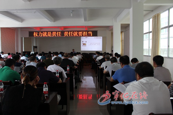 江向榮圍繞學習《中國共產黨問責條例》,為黨員干部上了一堂深刻、生動、精彩的黨課。他對《中國共產黨問責條例》十三條逐條逐句進行講解,內容涵蓋了問責條例制定的原因、問責的主體和對象、責任劃分等,對問什么、怎么問、問責如何決定等進行詳細解讀。江向榮強調,要夯實責任,自覺擔當,履行從嚴治黨的“主體責任”,切實按照《條例》的規定抓好落實。要嚴以律己,領導干部帶頭貫徹,以身示范,帶動黨員干部不折不扣執行《條例》,切實把紀律和規矩挺在前面。