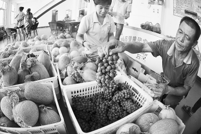 近日,在寧化縣水土流失嚴重的石壁鎮,石壁現代農業觀光園的工作人員在分揀葡萄、哈密瓜等水果。該園總投資5000萬元,首期建設500畝。園內主要種植有夏黑、金手指、醉金香等多個葡萄品種及哈密瓜等。