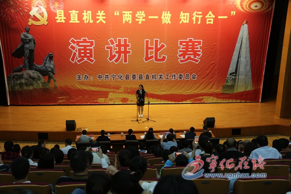??? 為扎實推進“兩學一做”學習教育,10月25日,由寧化縣委縣直機關工作委員會主辦的“兩學一做、知行合一”主題演講比賽在世界客屬文化交流中心舉行,來自縣級各機關單位的63名選手先后登臺亮相,一展風采。縣委常委、組織部長錢鋒及縣直機關黨員干部代表共200余人到場聆聽。