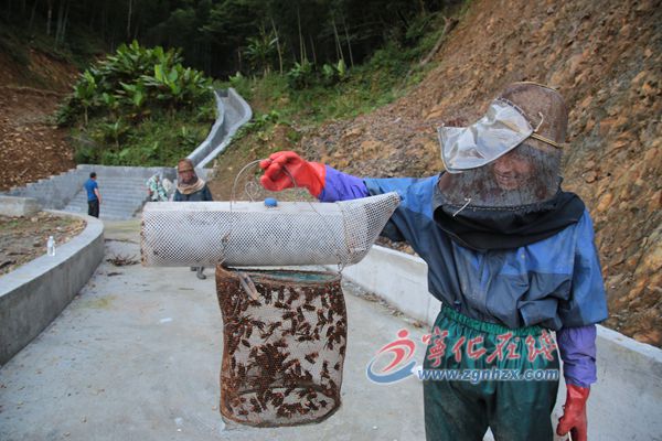 “你看,這個蜂巢最少25公斤。”曹學良笑著說。