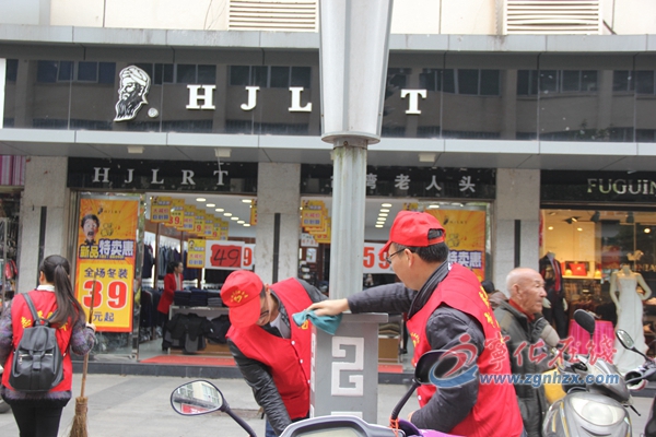 ??? 儀式結(jié)束后,全體志愿者們拿著掃帚、抹布等工具,來到步行街打掃衛(wèi)生,對(duì)沿街亂停亂放的車輛進(jìn)行重新擺放,將步行街路燈桿、花臺(tái)等進(jìn)行擦洗或清掃垃圾,用實(shí)際行動(dòng)為寧化縣環(huán)境的整潔和美麗積極貢獻(xiàn)力量。