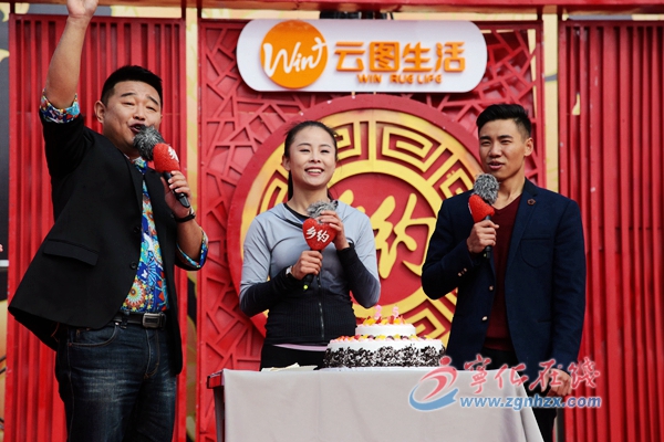 當天還是一號女嘉賓的生日,節目組為其送上生日蛋糕,肖東坡(左)與現場觀眾齊唱生日歌。