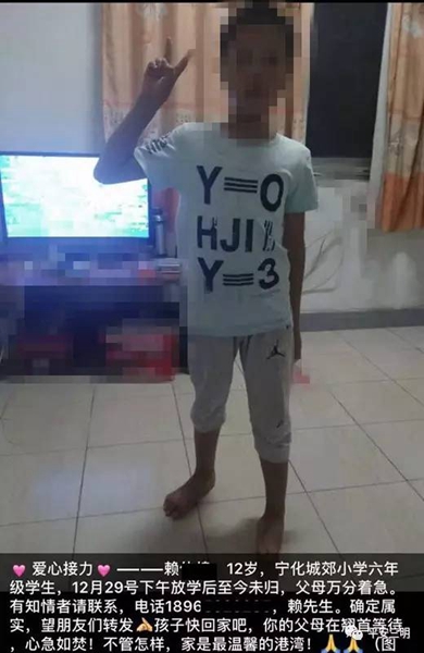 寧化一12歲孩子失蹤 警民接力78小時被找回