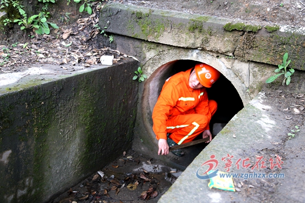 劉金福爬入涵洞清理垃圾