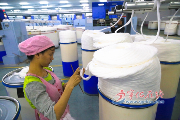 走進(jìn)奔鹿紡織紡紗車間,該企業(yè)從德國進(jìn)口的17臺(tái)并條機(jī)和17臺(tái)自絡(luò)機(jī),各條生產(chǎn)線正在高速運(yùn)轉(zhuǎn),雖然是春節(jié)剛剛結(jié)束,但是工人們?cè)诟髯缘膷徫簧嫌袟l不紊的忙碌著。公司總經(jīng)理舒守濤介紹,該企業(yè)于2016年10月正式投產(chǎn),預(yù)計(jì)下個(gè)月將達(dá)7.8萬紗錠的規(guī)模,月產(chǎn)紗近千噸,滿負(fù)荷生產(chǎn)年產(chǎn)值將達(dá)1.8億元。
