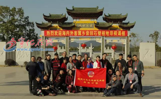 采風(fēng)團(tuán)成員在石壁客家祖地前合影