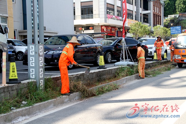 公路分局工作人員整治門前三包區域雜草垃圾