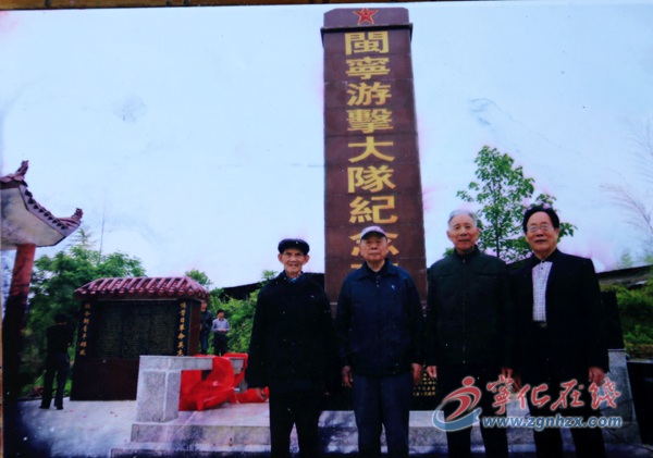 2014年5月,閩寧游擊大隊紀念碑落成時,廖逢祥(左一)與戰友合影