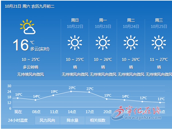 10月20日,記者從縣氣象局了解到,下周寧化縣天氣總體晴好,但是受冷空氣影響,夜晨氣溫較低,最低氣溫可達8.0~10.0℃,大家早晚外出時最好備件外套,既保暖又防風,夜間記得及時添加衣被,防止感冒。
