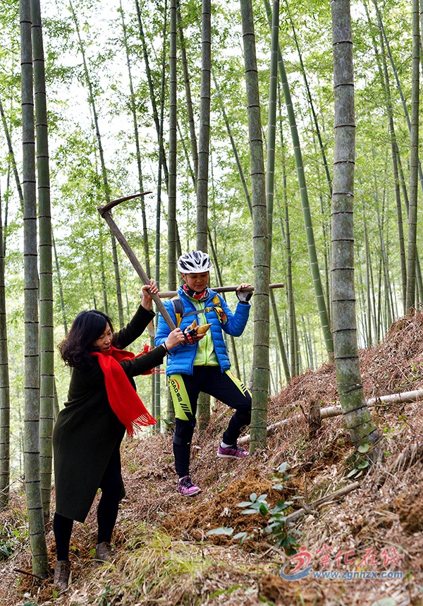 ? ? 在挖冬筍賽現場,游客們扛了鋤頭,背了編織袋,在指定的挖筍區域內紛紛體驗現場挖筍的樂趣,干勁十足。“這里有筍!”“啊,又白費勁了。”“怎么挖了個竹根?!”……大家熱情高漲,有的為找到冬筍而高興,也有的因挖不到冬筍而懊惱。而挖筍好手們戰果頗豐,沒幾分鐘功夫就挖了一小袋,還邊挖邊給沒經驗的朋友傳授經驗:“你抬頭往竹梢上看,葉子茂密的那個方向就是筍多的方向,你就順著這個方向挖,準能挖到。”