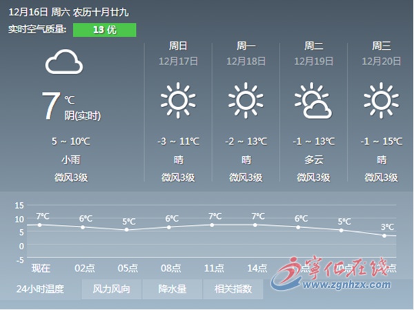 17日:晴,有霜凍或結冰 氣溫-3-11℃