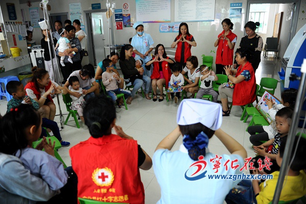 ? ? 為了讓小患者們在醫院也能度過一個快樂的節日,6月1日上午,寧化縣總醫院團委志愿者和縣紅十字會志愿者、紅黃藍幼兒園教師,在縣醫院兒科陪患病兒童過節。