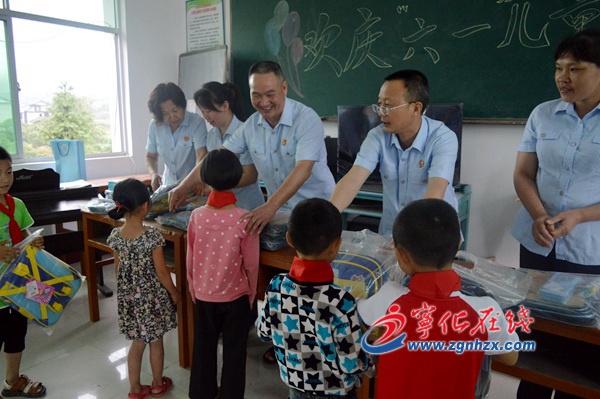 ? ? 6月1日,恰逢六一兒童節,寧化法院相關負責人帶領扶貧工作隊員來到安遠鎮永躍村小學為孩子們送去節日的祝福和“愛心書包”。書包中裝有鉛筆、彩繪筆和作業本等文具。