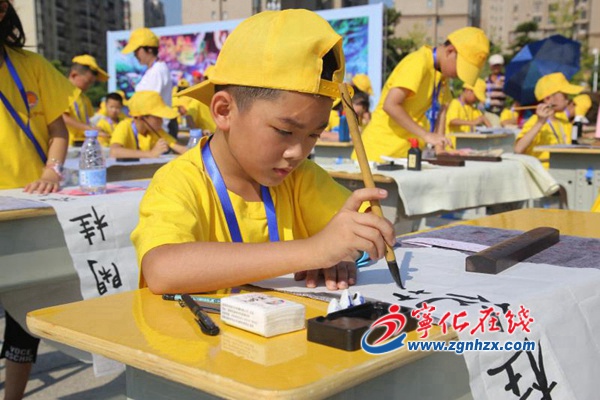 ? ? 廣場上,文化氛圍濃厚,翰墨陣陣飄香。參賽選手們身著統一文化衫,凝神運筆,揮毫潑墨,氣氛緊張而激烈,筆墨飛舞間,一幅幅或娟秀飄逸或蒼勁有力的毛筆書法作品呈現在大家眼前。
