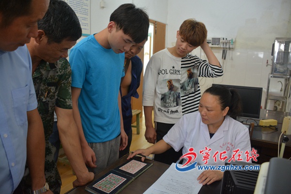 ? ? 7月31日,寧化縣曹坊鎮130名應征青年在各村民兵營長的帶領下到曹坊鎮中心衛生院接受體檢初檢。